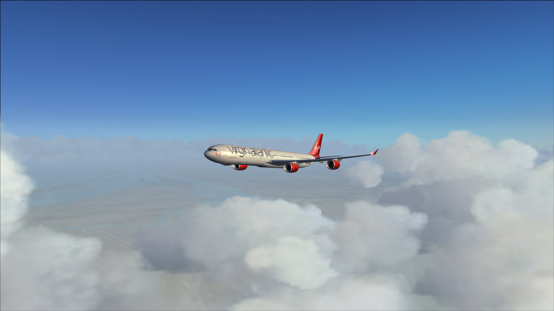 A340-600 Virgin Atlantic, above Cape Canaveral |